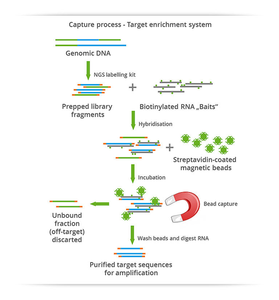我们采用NGS靶向序列捕获领域的领导者—Agilent公司的SureSelect系列产品,确保能给客户提供最高品质的外显子测序服务。2009 年,安捷伦推出第一个适用于新一代测序技术的靶向序列捕获解决方案——首个液相捕获系统SureSelect。SureSelect采用独特的超长RNA作为捕获探针,能够高效地捕获带有SNV,InDel,Gene Fusion和CNV等突变的基因组序列。捕获后的文库使用二代测序仪器领域的领导者—Illumina公司的X-Ten平台进行高质量的测序,确保最高的测序数据准确性。再利用专业的数据分析算法与软件系统进行深度的数据分析,还可以根据您的需求进行定制化的高级数据分析服务。最终可以有效的找到候选位点帮助您更深入探究疾病和变异的内在联系。