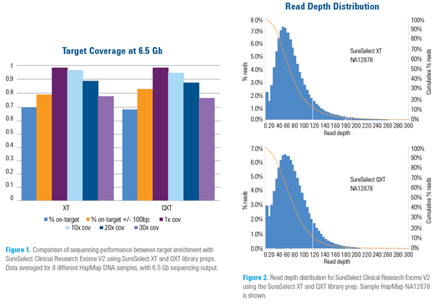 SureSelect 临床研究全外显子组 V2是安捷伦最新版的全外显子组捕获试剂盒。它在SureSelect全外显子V6(60Mb)的基础上进一步增加了大量疾病相关基因区域覆盖,设计覆盖了人类孟德尔遗传学数据库 (OMIM)、人类 MIM)、人类基因组突变数据库 (HGMD) ,ACMG以及 NCBI ClinVar 等数据库定义的疾病相关靶标可实现更深的覆盖,覆盖区域达65.7Mb。并首次提供这些基因与疾病的关联列表。该产品是安捷伦卓越探针设计合成技术和埃默里大学以及费城儿童医院的研究者丰富研究经常的完美结果。